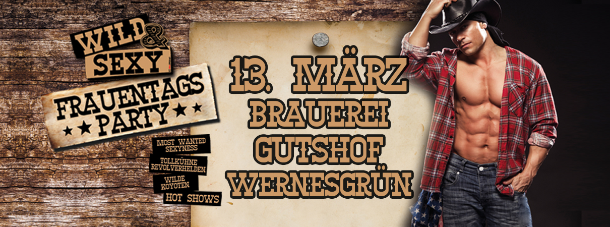 Ladies aufgepasst, es wird WILD & SEXY im Brauerei Gutshof. Am 13. März 2026 feiern wir mit Euch den internationalen Frauentag nach Wir lassen für Euch den Wilden Westen Los! Freut Euch auf PRICKELNDEN EMPFANG / KLEINE UND GROßE LECKER´EIN / WILDE KOYOTEN & HEIßE COWBOYS / MOST WANTED PARTY ALL NIGHT / SCHARFE TOYS / HOT MENSTRIP / ENTERTAINMENT PUR XXX SORRY JUNGS XXX >>> LADIES ONLY Diese Party feiern wir NUR mit Den Damen der Schöpfung